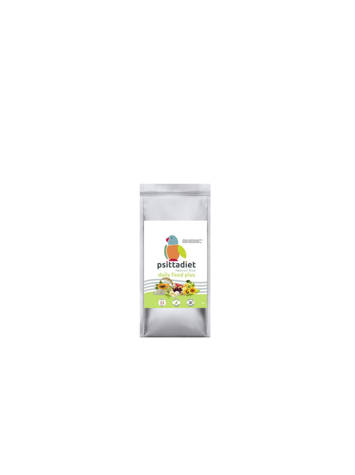 Psittadiet Daily Food Plus Psittadiet Daily Food Plus est un aliment extrudé, complet et équilibré pour les psittacidés. Peut servir d'aliment de base ou de complément à toutes les espèces de psittacidés de taille moyenne ou grande.